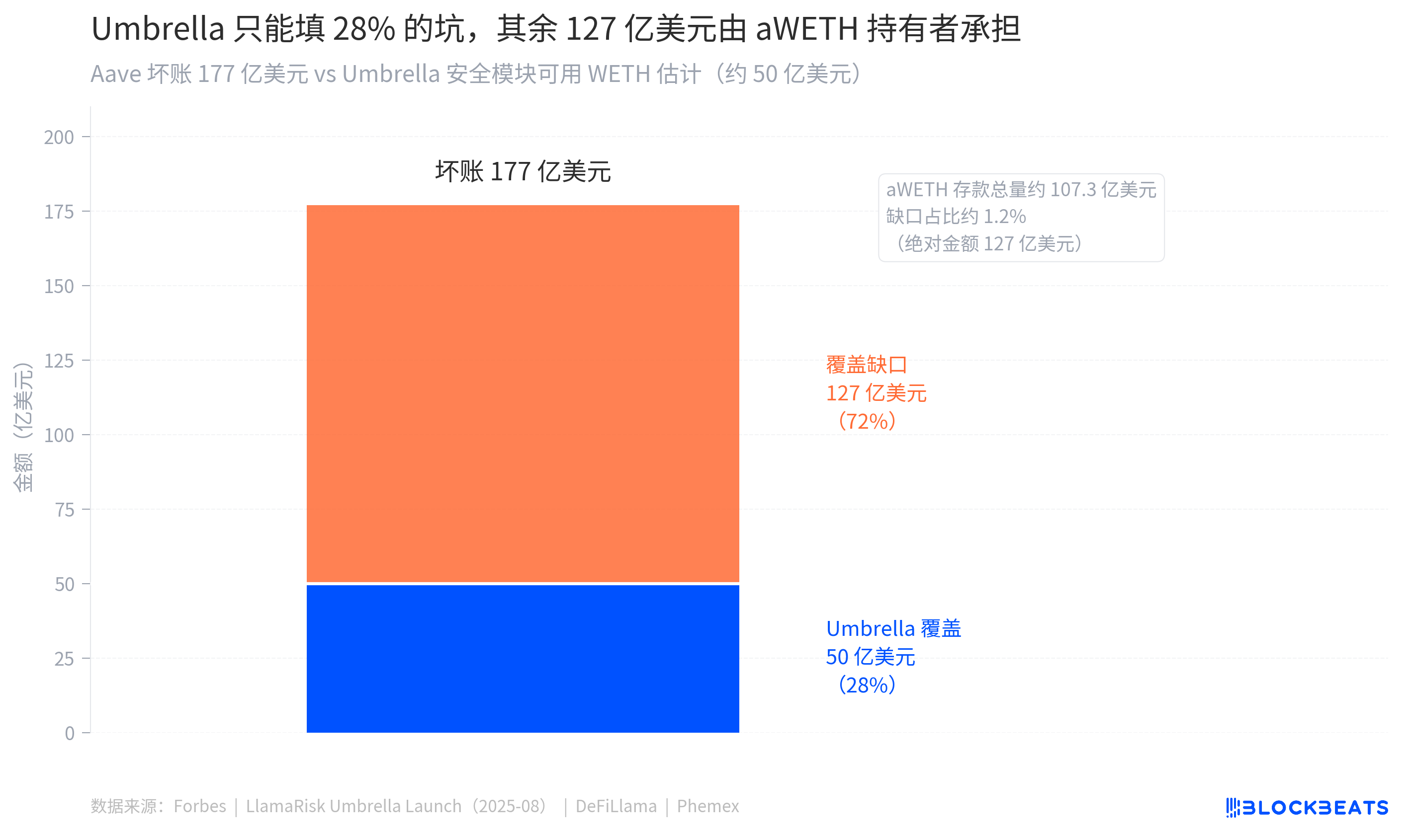 Umbrella hiện có khoảng 50 triệu USD WETH để hấp thu lỗ (theo Forbes). Quy mô các khoản xấu là từ 177 triệu đến 200 triệu USD. Khoảng cách giữa hai con số này, khoảng từ 127 triệu đến 150 triệu USD.
