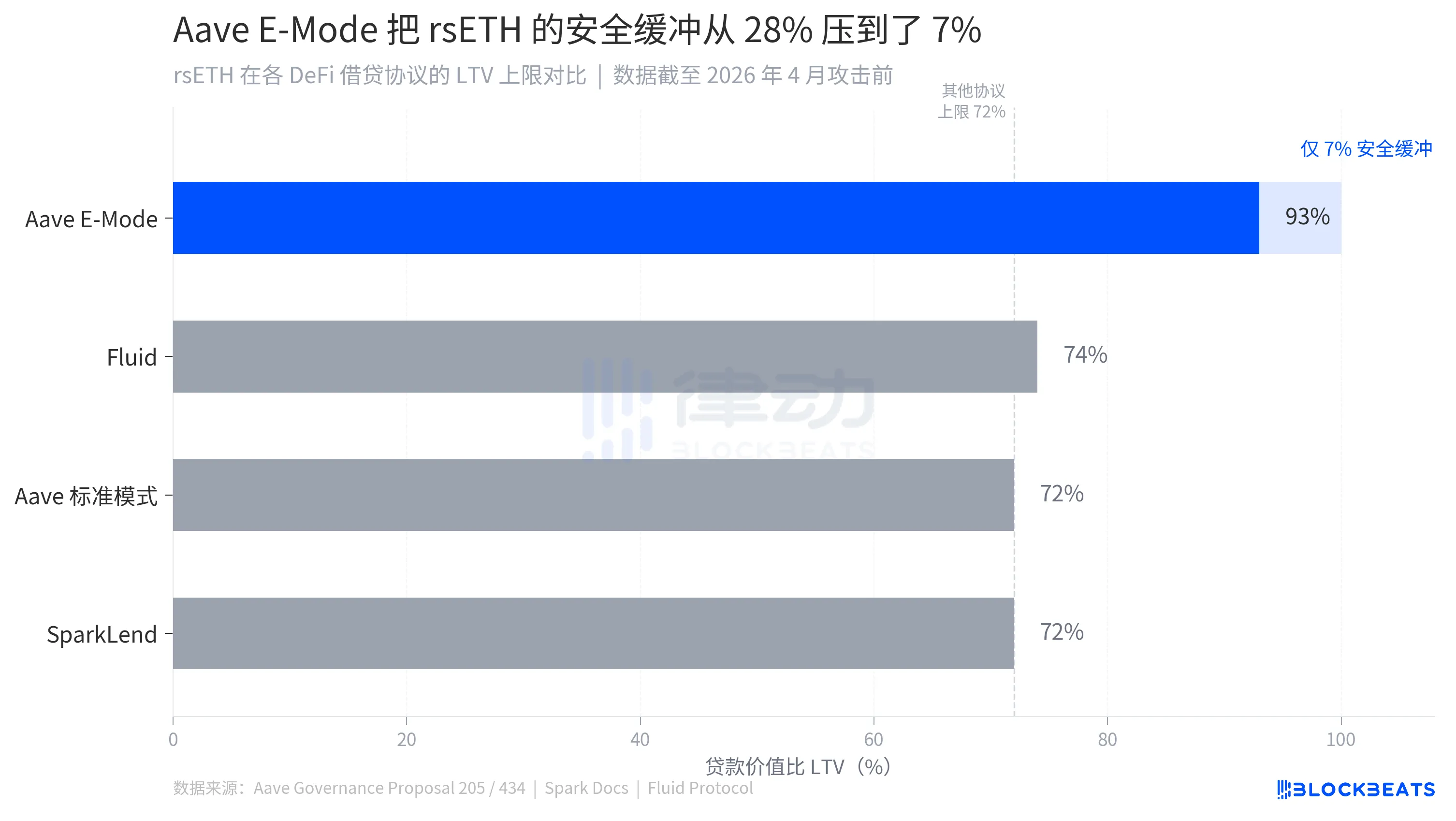 Vào ngày 19 tháng 1 năm 2026, cộng đồng Aave đã thông qua đề xuất quản trị số 434. Trọng tâm của đề xuất là thêm WETH vào LST E-Mode của rsETH, đồng thời tăng tỷ lệ giá trị tài trợ tối đa của rsETH trong chế độ này từ 92.5% lên 93%. Sự thay đổi nhỏ nhưng ý nghĩa rõ ràng, người dùng có thể vay ra 93 đô la Mỹ của WETH từ Aave bằng 100 đô la Mỹ của rsETH.