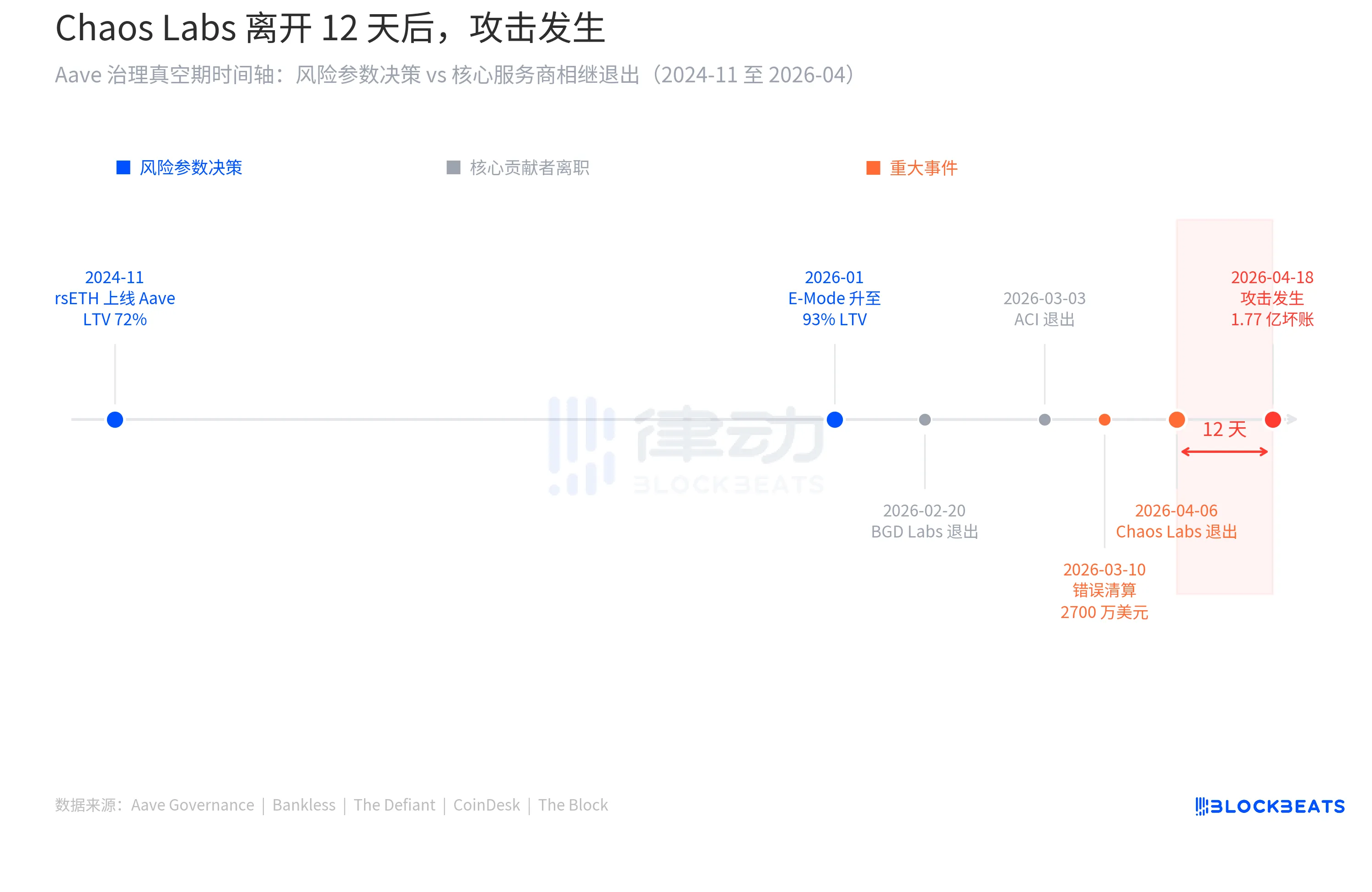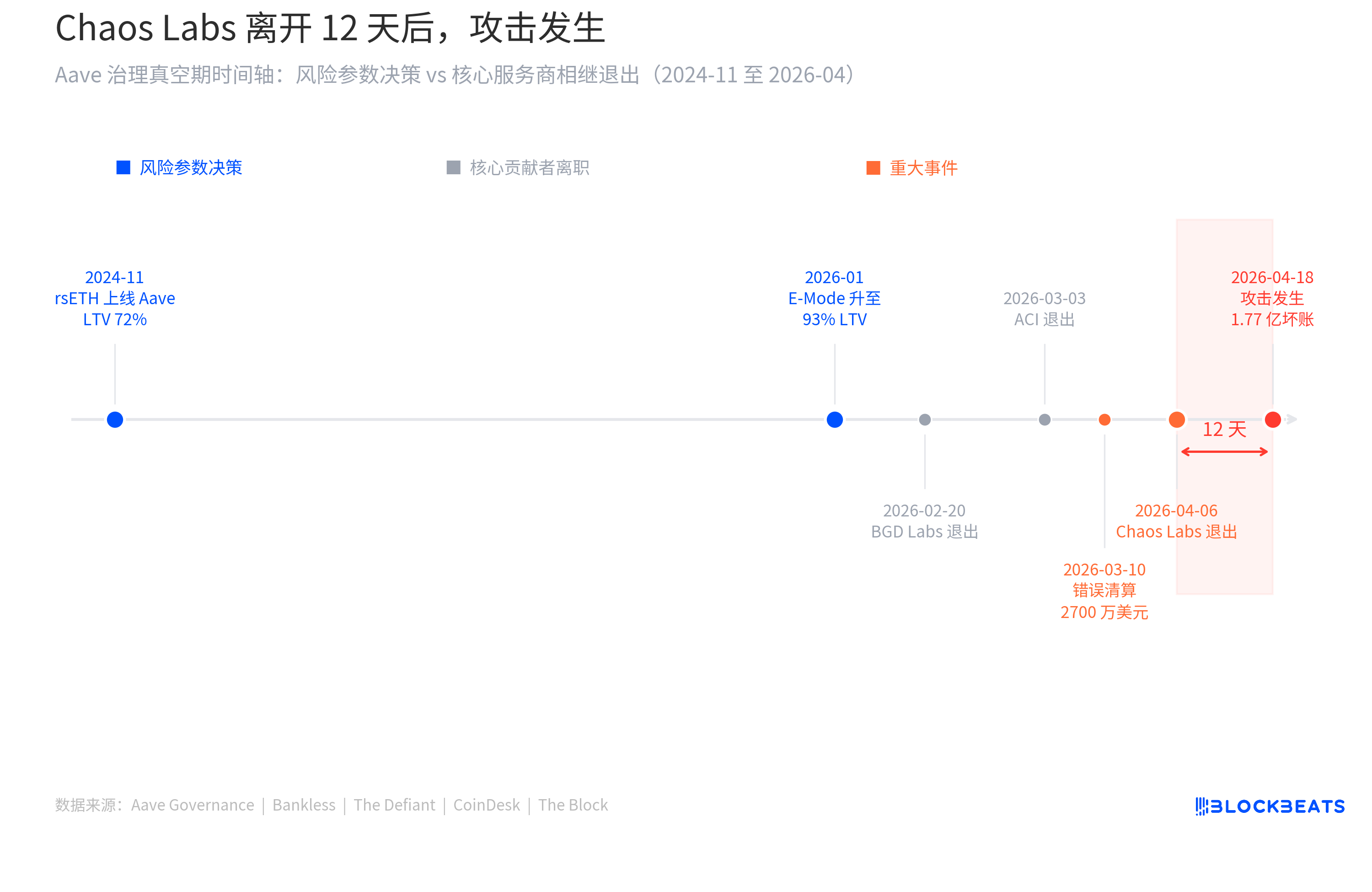 Ngày 6 tháng 4, Chaos Labs đã thông báo rút lui khỏi Quản lý Rủi ro của Aave. Ngày 9 tháng 4, LlamaRisk mới tiếp quản đã nộp một đề xuất điều chỉnh điều kiện rủi ro thông thường, nâng mức cung cấp rsETH từ 48 nghìn đến 53 nghìn. Lý do là dữ liệu trên chuỗi lành mạnh, tỷ lệ sử dụng bình thường, thanh khoản dồi dào, tập trung vị thế trong phạm vi chấp nhận được. Tất cả các chỉ số đều đến từ chuỗi.