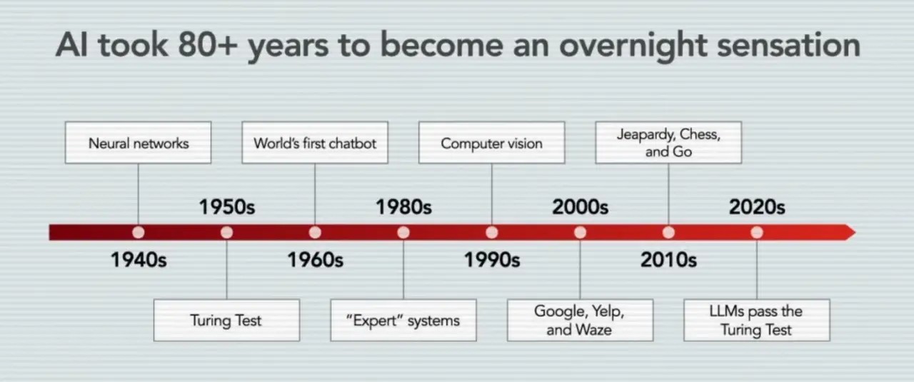 · Marc Andreessen gọi trực tiếp thời điểm hiện tại là "80-year overnight success", ý là sự thành công đột ngột trong mắt công chúng thực chất là việc giải phóng tập trung của hàng chục năm kỹ thuật.